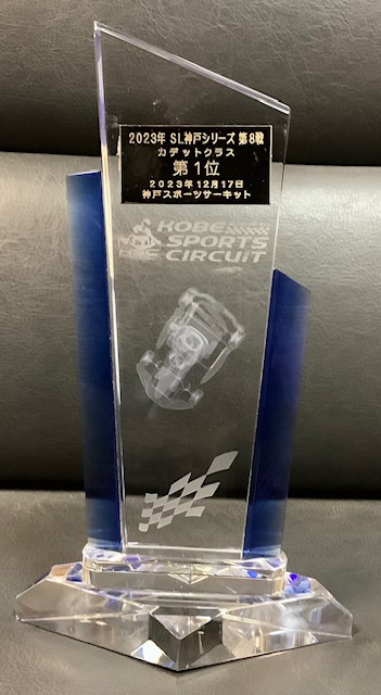 今日の伝達表彰は、神戸スポーツサーキット SL神戸シリーズ第8戦カデットクラス第1位に輝いた4年3組の寺西さんに、素敵なトロフィーを授与しました。おめでとうございます。