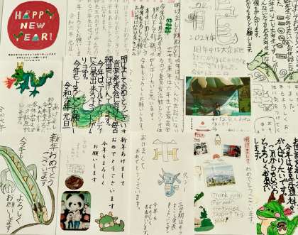 学校に、子ども達からの年賀状が届いています。