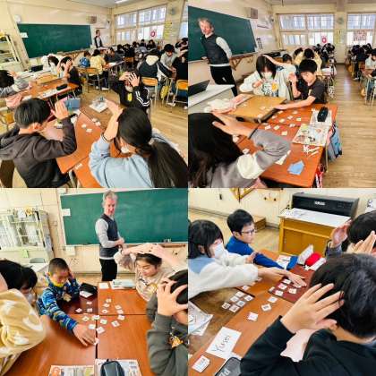 英語の先生と一緒に、楽しく単語を覚える練習をしました。