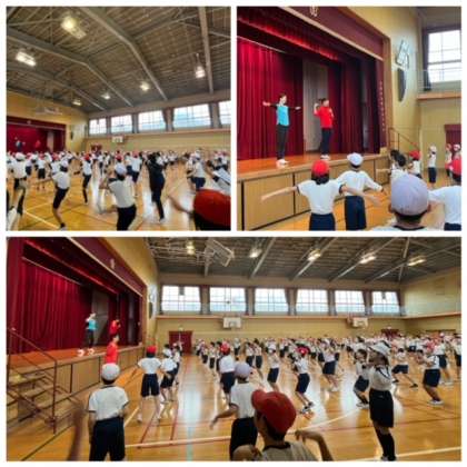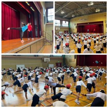 鈴木先生の巧みな話術とアシスタントの戸塚先生・舘野先生の美しい動きで、準備運動からスタートです。動きの楽しさに子どもたちのテンションが一気にあがり、冷えていたからだが温もりました。