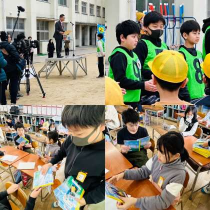 NHKテレビカメラの前で、いつものようにみんなでラジオ体操に取り組みました。