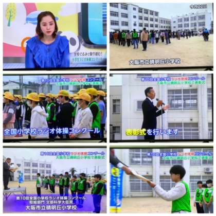 1月26日(金)「ぐるっと関西おひるまえ」で、ラジオ体操についての特集番組が放送されました。ラジオ体操の歴史や効果の説明の後、学校ぐるみで取り組む小学校ラジオ体操コンクールが紹介され、晴明丘小学校が登場です。