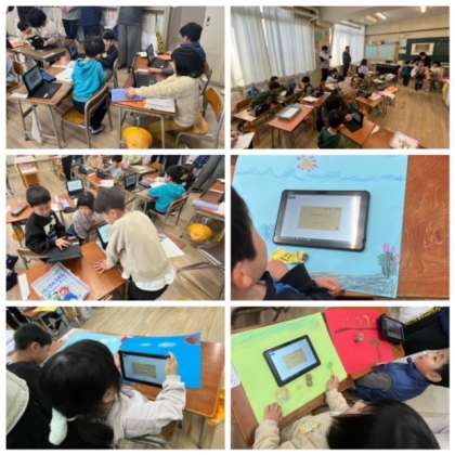 出来上がった作品を保存し、お友だち同士で鑑賞です。とてもおもしろい作品が出来上がっています。