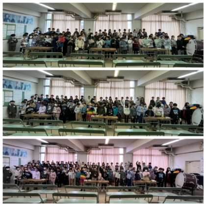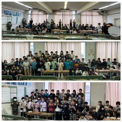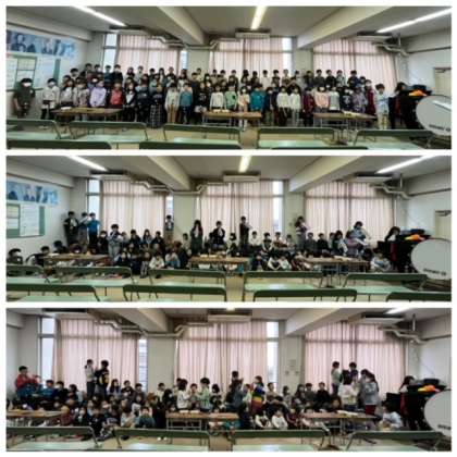 2月5日(月)3時間目、音楽室で明日の学習参観で発表する音楽リハーサルをしました。本番さながらの緊張感、最初から最後までノンストップでみんなの心を一つにして頑張っています。