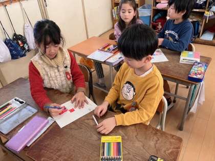 算数のどちらが広いかを考える学習で、陣取りゲームをしました。