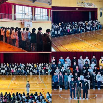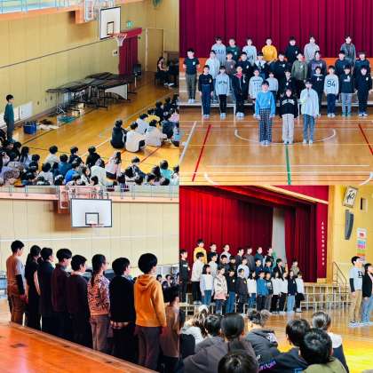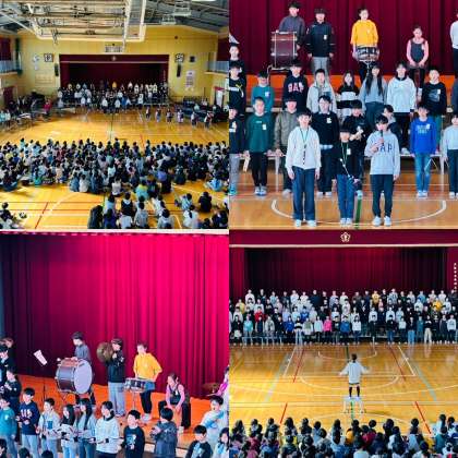 講堂に集まった大勢の児童や先生方から大きな拍手をもらい、子ども達は笑顔を見せていました。