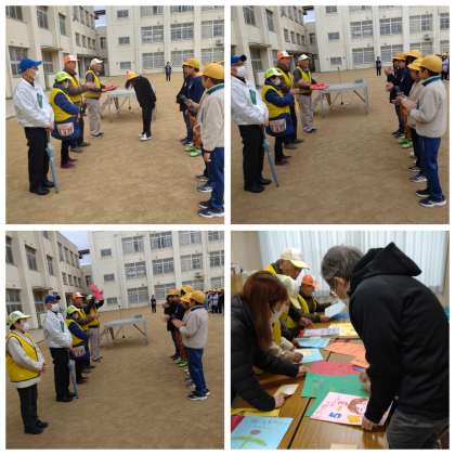 校長先生から見守り隊の皆さんの紹介をしていただき、子どもたちから感謝の言葉を伝えてから、みんなで書いた感謝のメッセージをお渡ししました。
