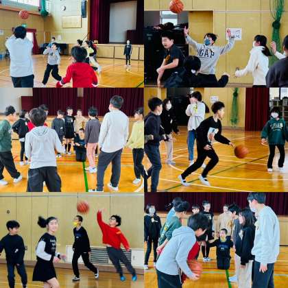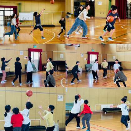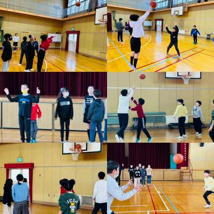1時間目が始まる前や昼休みなど、時間を見つけてバスケットボールに取り組んでいます。