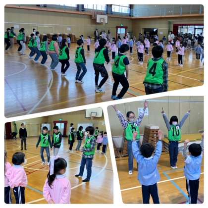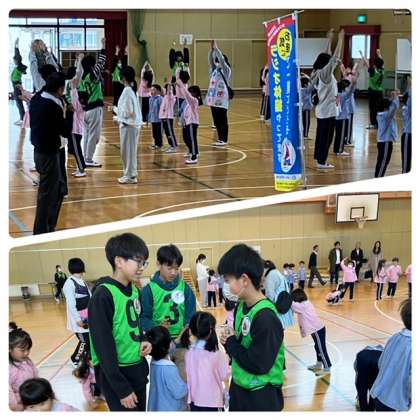 幼小交流会の後に、運動委員会の児童が幼稚園のみなさんにラジオ体操を伝える会を行いました。