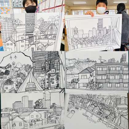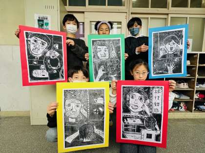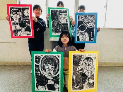 子ども達は、「風景の絵、めっちゃ細かく建物が描けてるってお母さんに褒められた!」「顔の掘り跡がすごく丁寧って言われた!」と、嬉しそうに話していました。