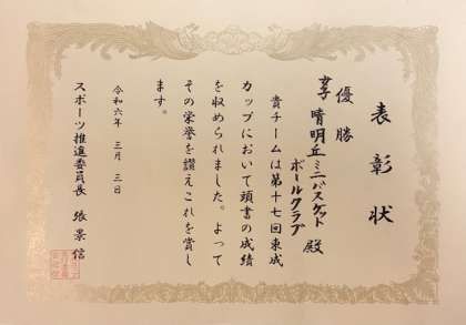 伝達表彰(晴明丘ミニバスケットボールクラブ) 3/4