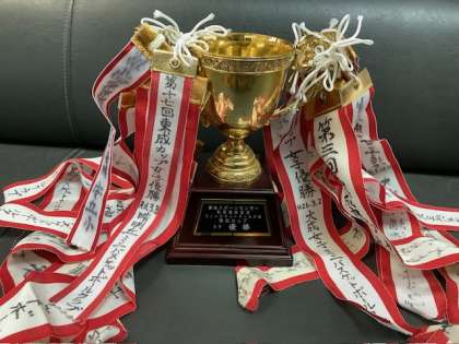 第17回東成カップにおいて「優勝」の栄冠に輝いたので、賞状ならびに優勝カップが授与されました。おめでとうございます!