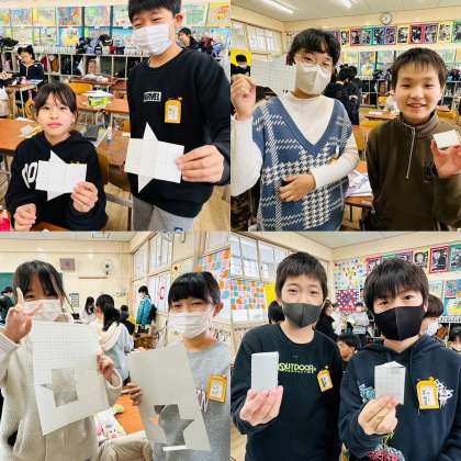 子ども達は、初めての三角柱の展開図に苦戦している様子でしたが、試行錯誤しながら楽しく取り組んでいました。