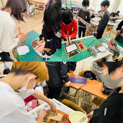 図工では、伝言板にニスを塗り、ホワイトボード用のシールを貼り、穴を開けてひもを通し、無事に完成させることができました。