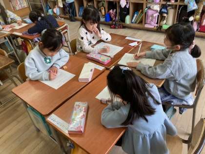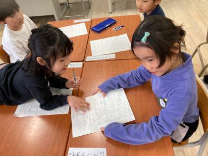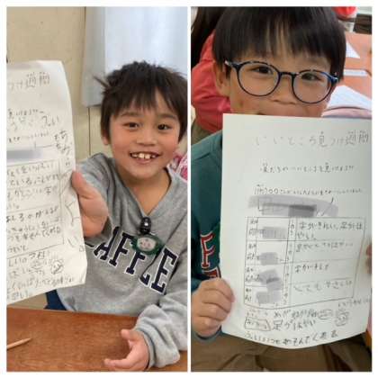 紙を回していき、自分のいいところを書いてもらいます。手元に帰ってきた時にはたくさんいいところが書かれていました!とても大切そうにニコニコしながら読んでいました。