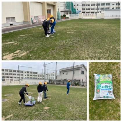 【栽培委員会】芝生の手入れ(目土)  3/19