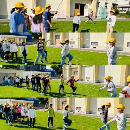 暑さのため、短い時間でしたが、みんなで長縄跳びをしました。