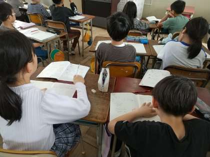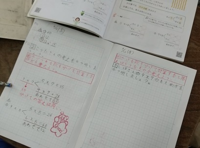 かける数を分けて計算しても、答えが同じになることを自分なりに考えをまとめ発表していました。