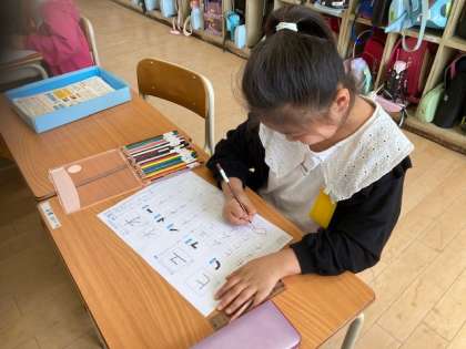 書く姿勢や鉛筆の持ち方も改めて確認してみると「これから姿勢良くしよう!」と見直したり、「鉛筆はこう持つんだよ!」と教えたりしていました。
