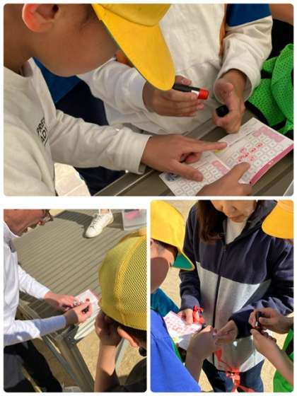 運動委員からの参加ハンコ。参加したみんなは、笑顔でハンコを押してもらっていました。