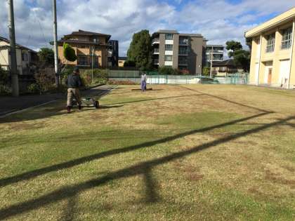 今日、西運動場の冬芝の種を