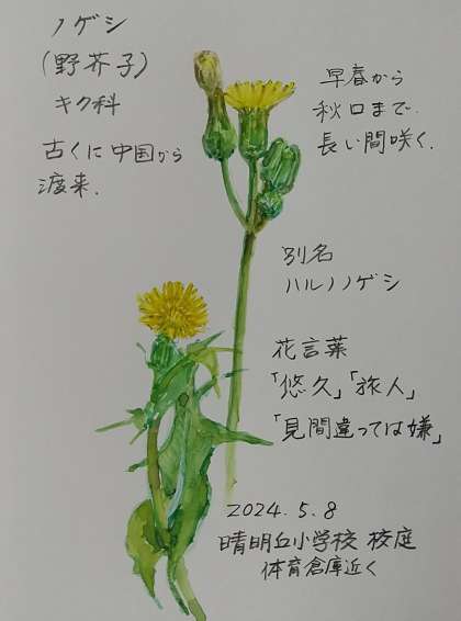ハルノノゲシとも呼ばれ、暖かな春のイメージがあるが、年中咲いているものもある。たくましい花。