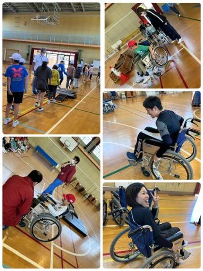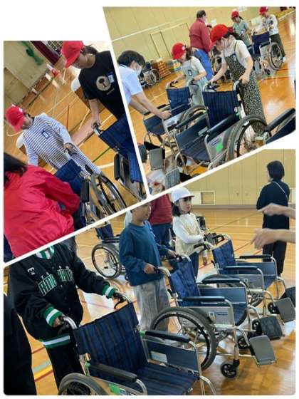 総合的な学習の時間に福祉の学習をしている4年生は、「車いす体験」をしました。