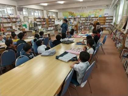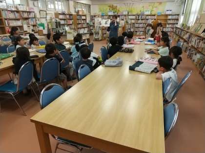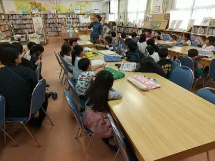 5時間目には、1年生が図書館を利用していました。司書の先生が絵本の読み聞かせをしてくださり、1年生は楽しそうに聞いていました。