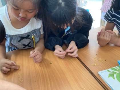 小さな作業も真剣に、100を超える数も友だちと協力して数えていました。