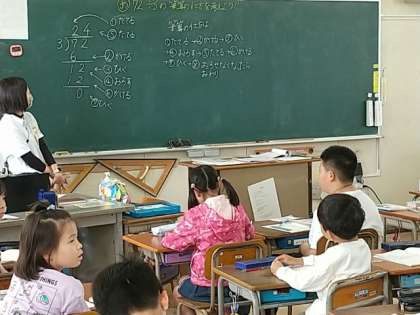 4年生が算数で、「2けた÷1けたの計算」について、いろいろと考えを出し合っていました。