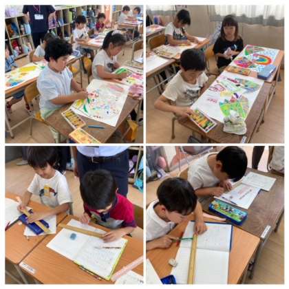 図工では不思議なたまごの中身を想像力を膨らませながら描いていきます!