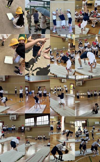 体育では、マット運動が始まりました。前転系や後転系、側転系など様々な技を練習しています。テストでは、技を組み合わせて自分だけの技の流れを披露します!
