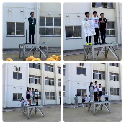 今月は食育月間なので、委員の子どもたちが「残さず食べて元気な体になろう」と全校児童に向けて呼びかけをしてくれました。