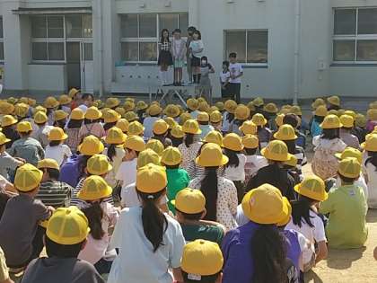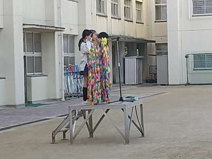 6月になりました。先週とは打って変わり、初夏らしい爽やかな朝の空気の中、児童朝会を行いました。