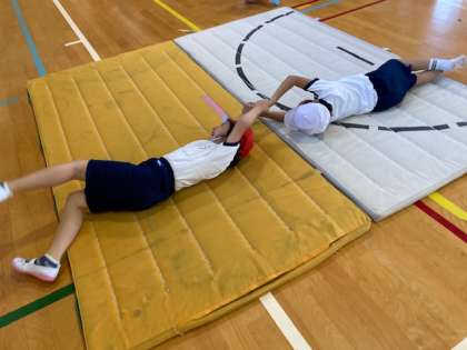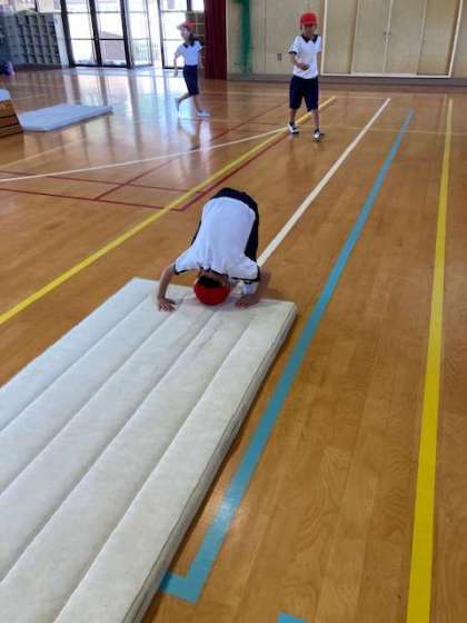 体育館でマットを使って様々な動きをしました。