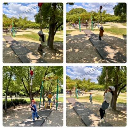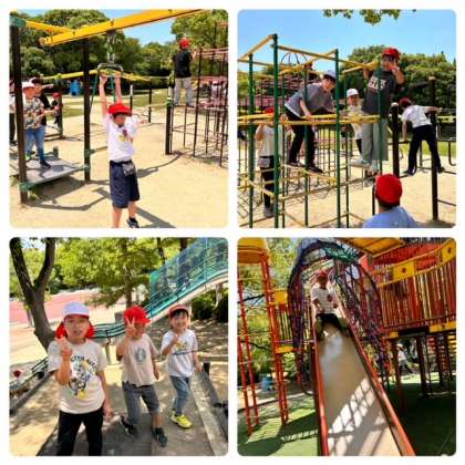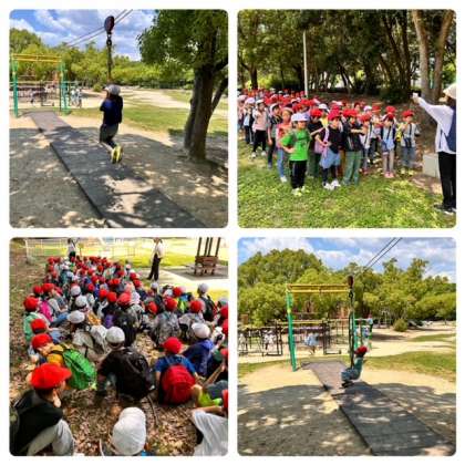 わんぱく広場に移動して、1回目とは違う遊具で遊びます。お弁当を食べた後なので、子どもたちは、パワー全開です!