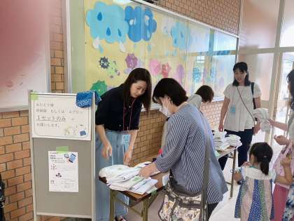 6/9(日) 日曜参観後に、PTA体育厚生委員会による今年度初めての体操服・給食エプロン・赤白帽のリユース活動を行いました。