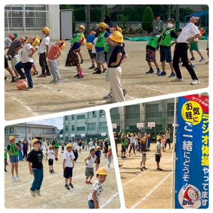 毎週木曜日は「みんなでラジオ体操」の日です。運動場に児童や地域の方々がたくさん集まりました。暑さにも負けず、みんなで元気にラジオ体操に取り組みました。