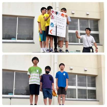 明日からプール水泳が始まります。校長先生よりプール水泳を安全に行うための3つの約束事のお話がありました。