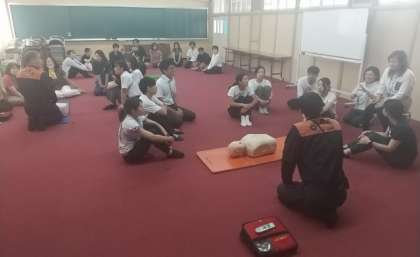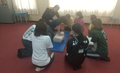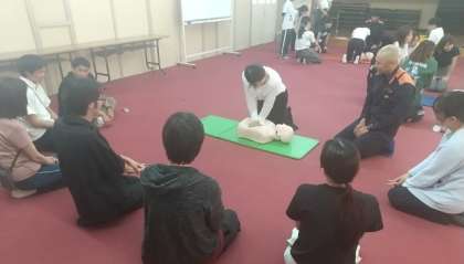 阿倍野消防署の方に来ていただき、心肺蘇生のための胸骨圧迫法やAEDの使い方などについて講習会を行っていただきました。