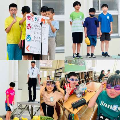 全校朝会での6年生は、委員会からの連絡をしたり、表彰を受けたりしました。