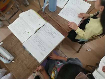 2年生が、国語で「組み立てを考えて文を書こう」という学習をしています。