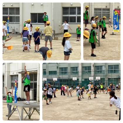 今日も元気にラジオ体操。参加している6年生が自主的に「いち、にぃ、さん、しぃ」と大きく声を出していました。その声のおかけで、たくさんの人が声を出し運動場にみんなの声が響いていました。