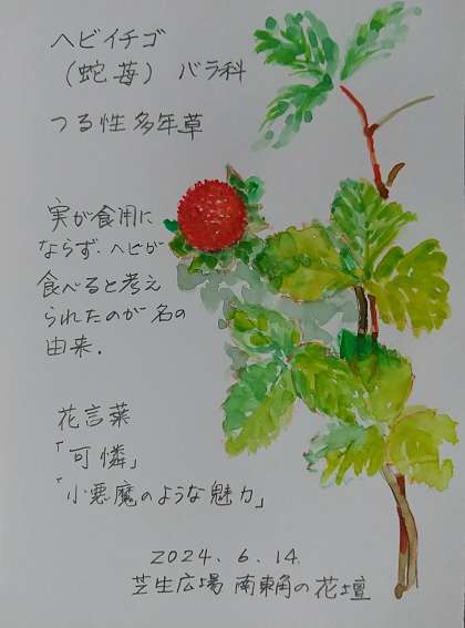 子どもの頃、このイチゴを見つけると、近くにヘビがひそんでいそうで、少しドキドキした。