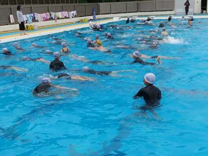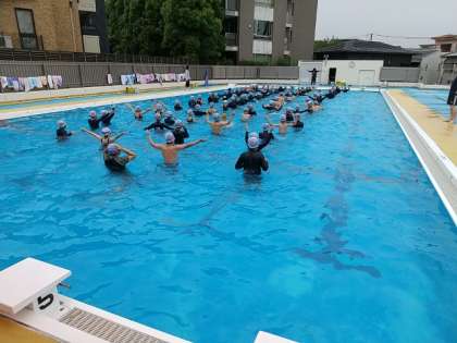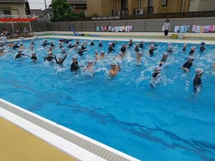 4年生が、プールで学習しています。