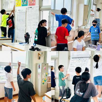 子ども達は、「窓を開けると一気に室温が下がる。」「風が通ると、涼しさを感じる。」と、気づいたことを口にしていました。