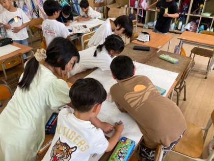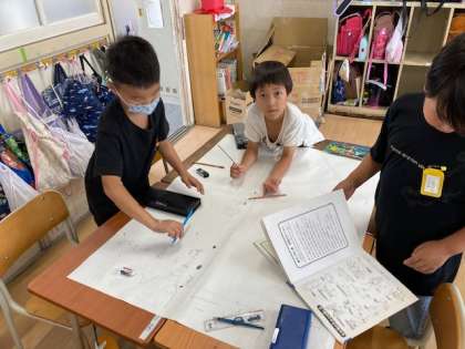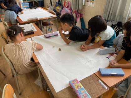 グループで協力しながら、見た人に伝わるように書いていっています。