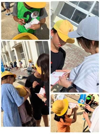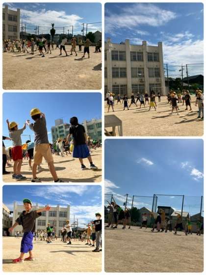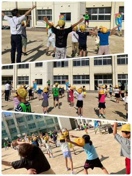 運動員会は前に出てお手本を見せたり、ラジオ体操に参加している低学年のみんなにアドバイスしたりと、今回も張り切って活動していました。