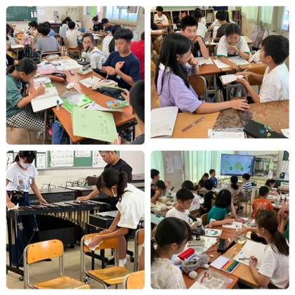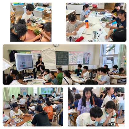 理科「生物どうしのつながり」で、学習園のトンボ池の水をくみとり、その中にいる微生物を観察しました。