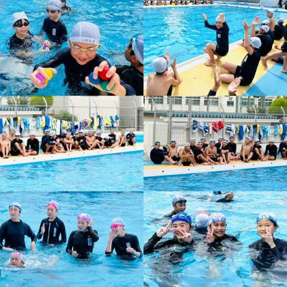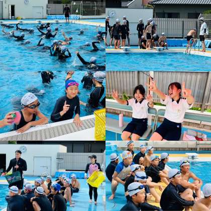 クロール・平泳ぎの練習の後に泳力調査を行い、希望者は25mのクロールのタイムを計りました。